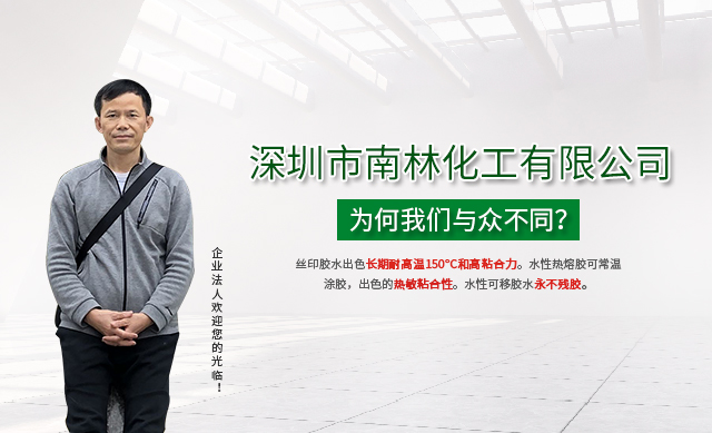 深圳市南林胶科技有限公司 位于深圳市龙岗区平湖街道华南城,一般纳税人企业。德庆南林粘剂加工厂位于肇庆市,自有1000多平方米厂房,工厂设备配套完善,专业生产胶粘剂,主要产品有: 压敏胶乳液(不干胶),丝网印刷胶水,水性热熔胶及一批特殊性能胶水。公司信仰“科学技术是生产力”的理念,坚持以诚信求立足,以质量求生存,以客户求发展的经营原则,为广大客户提供优质的产品和服务。欢迎新老客户携手合作,共创你我的美好明天。